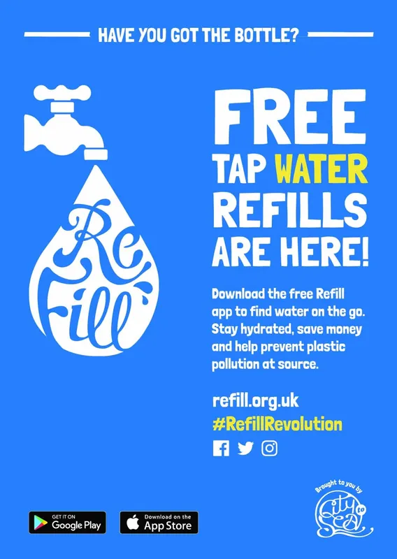 · Many UK cities now offer free water refill points. Download the free REFILL app
