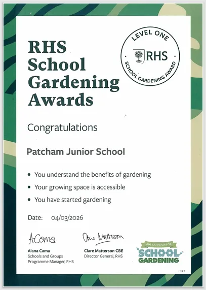 RHS School Gardening Award - Another incredible achievement made possible by Ms Moyse and our wonderful children! This is a culmination of the hard work of several groups since the beginning of the year, so it really is a team effort from students across the school. We will plant the seeds sent by the RHS as reward and we'll share their produce soon!